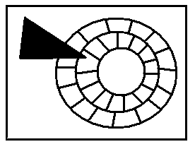 Na obrazku poniżej jest narysowany dysk, jego talerz (koło) i głowica (trójkąt).