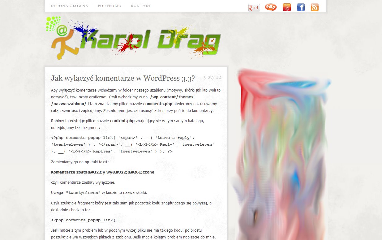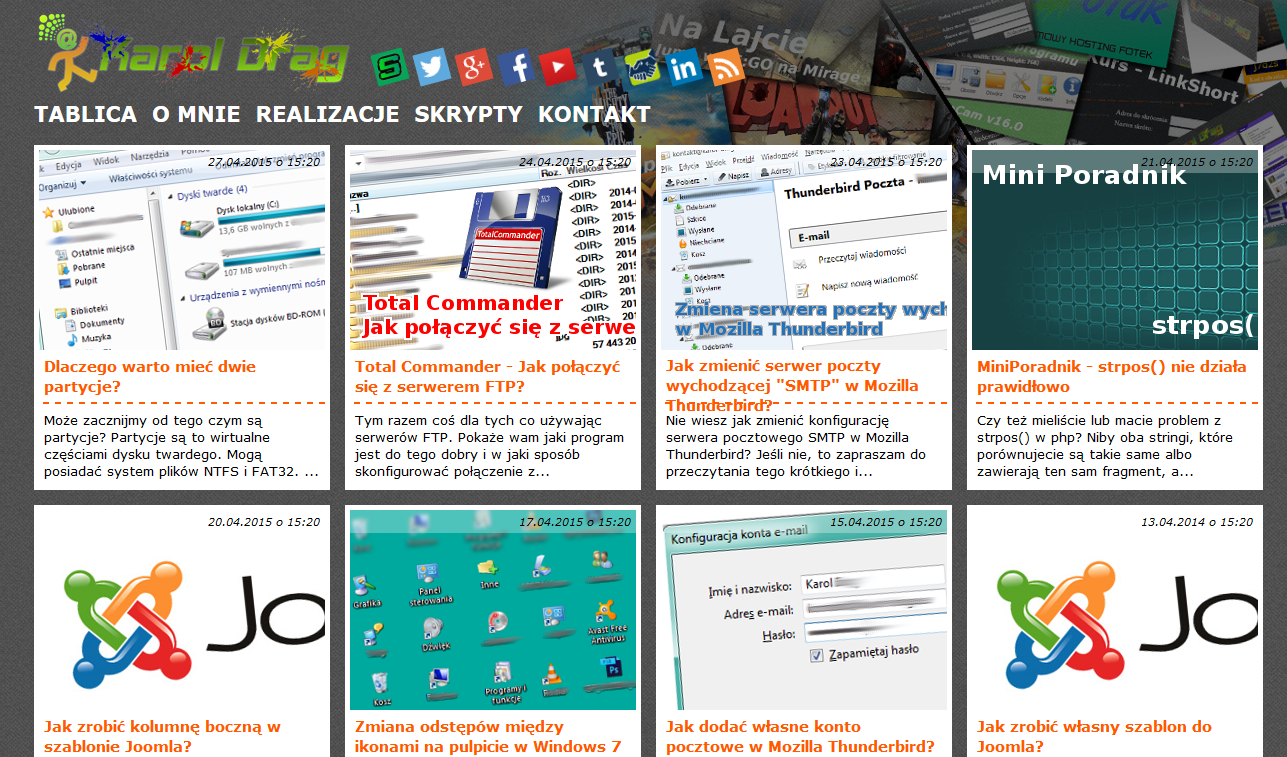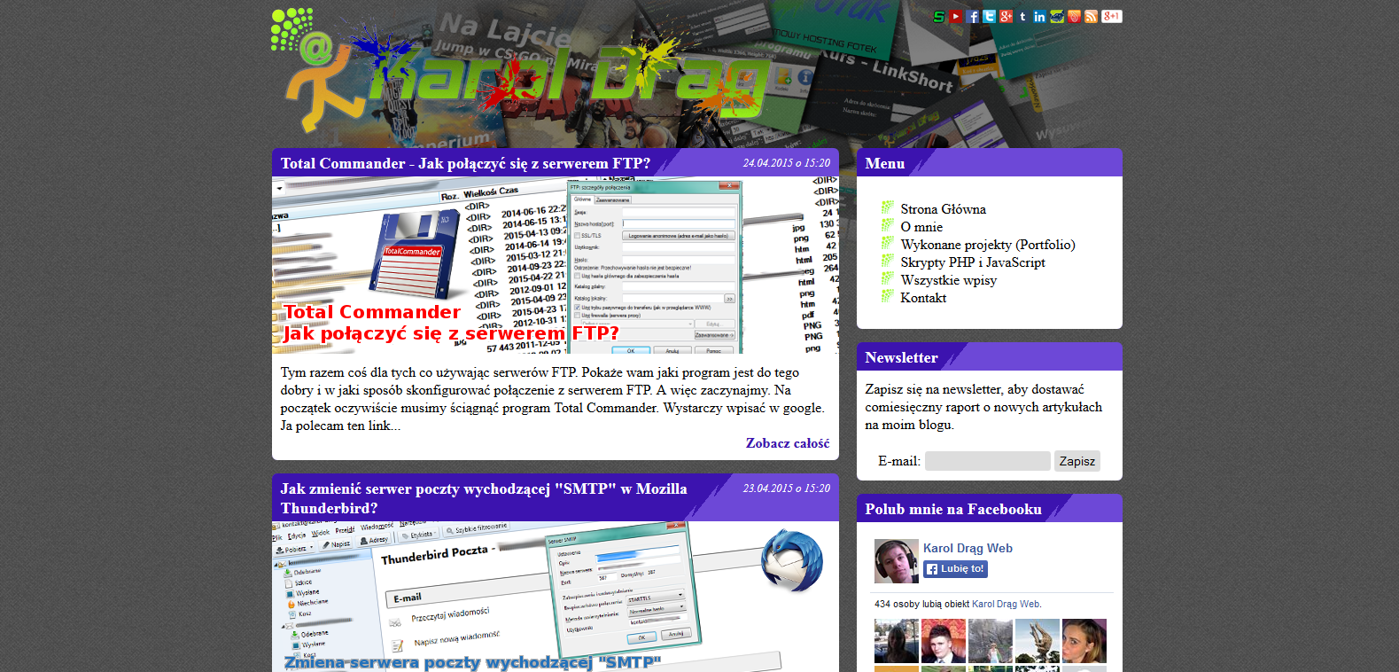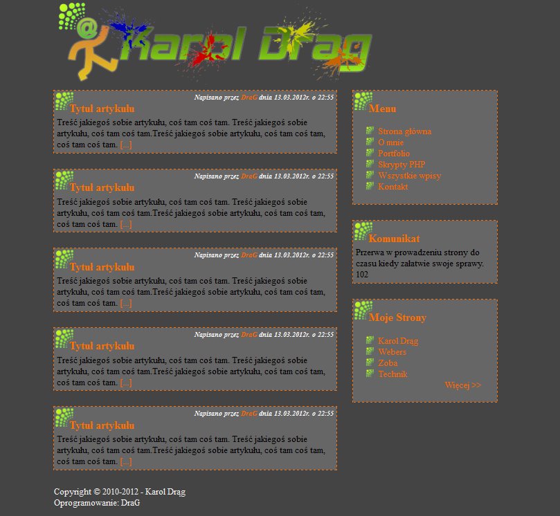 v5Piąta wersja ukazała się 18 kwietnia 2012 roku i jest to prawdopodobnie ostatnia wersja szablonu i systemu. Strona w ostatniej wersji jest postawiona na autorskim systemie CMS, dlatego nie można go nigdzie zdobyć. Jak widać logo zostało jeszcze z poprzedniej wersji. Myślę, że na tej wersji zostanę już do końca, może będę dodawał jakieś moduły/dodatki by polepszyć funkcjonalność strony. Myślę, że uda mi się napisać sporo artykułów, poradników, czasami też będę pisał taki sobie krótkie wpisy. To na razie tyle informacji.